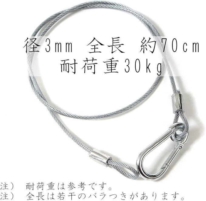 直径: 3mm 長さ: 約70cm 安全耐荷重: 約30kg 5本セット/袋