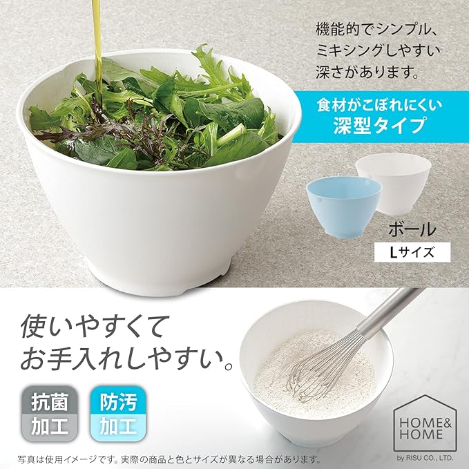 リス ボウル 深型 ボール L ホワイト 21cm (容量 2.6L) H&H 抗菌・防汚加工 日本製
