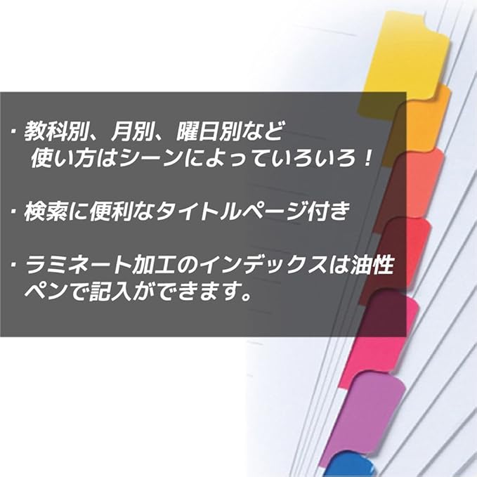 インデックスはバインダーに綴じて項目別に整理、検索する際に便利です。