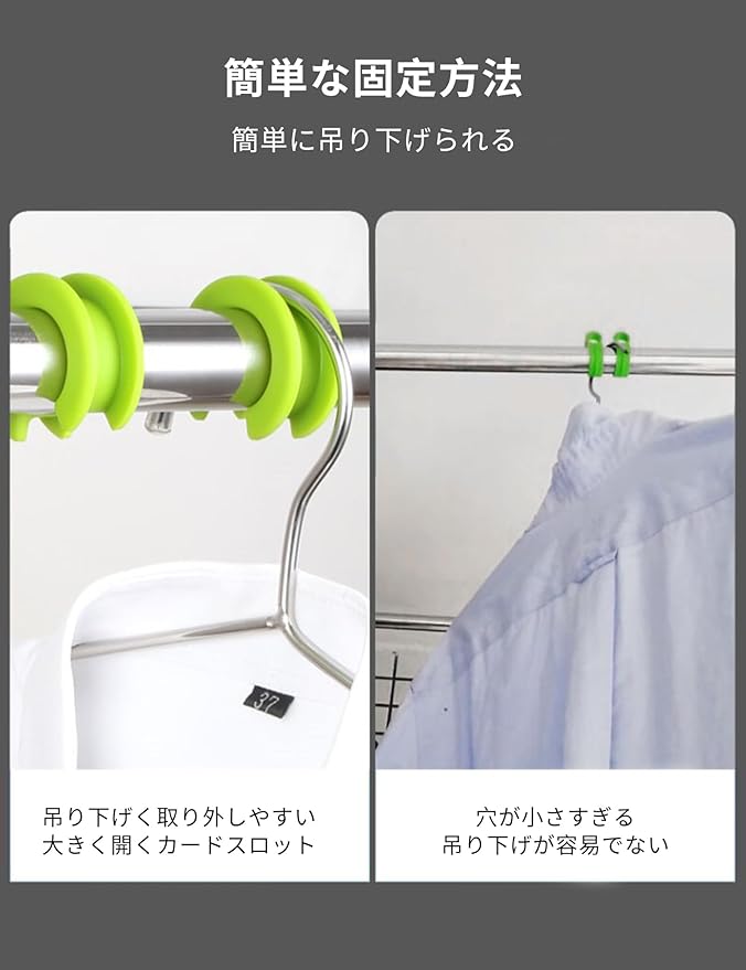 さまざまな用途、ハンガー、衣類乾燥ロープ、屋外の衣服の棒、ワードローブ、またはその他のロッドに取り付けて、部屋をきれいに分類して部屋をきれいにすることができます。
