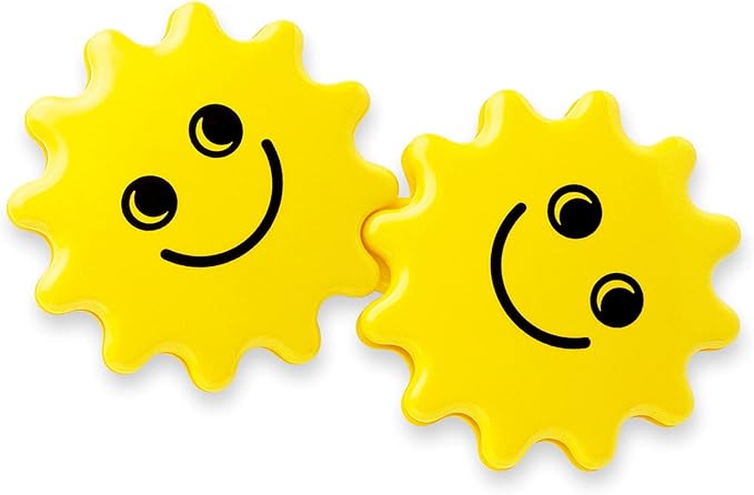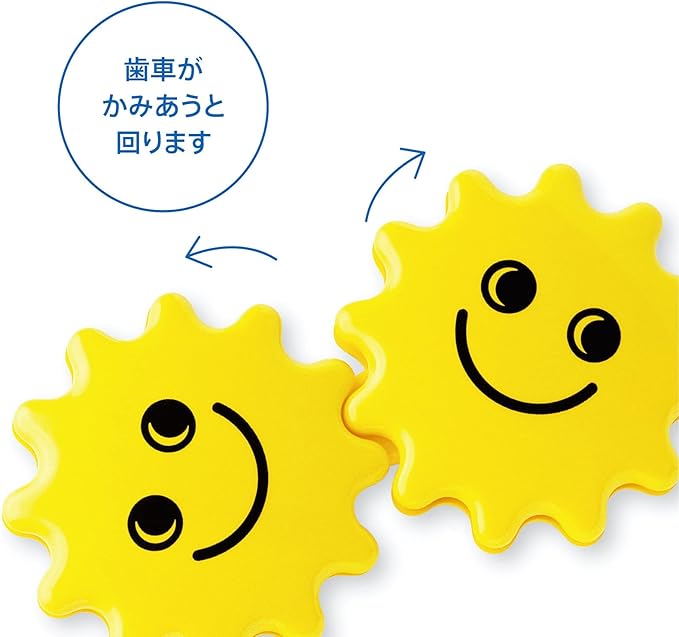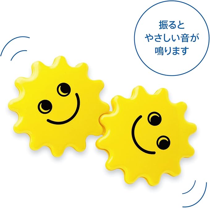 にこにこスマイルの噛みあう2つのお日様が一緒にクルクル。赤ちゃんも一緒にニコニコです。