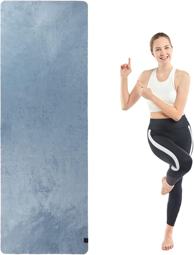 ヨガタオル 滑り止め付き ヨガマット専用 ピラティス瞑想ジム ホットヨガに最適 マイクロファイバーヨガタオル 滑り止め 185cm*66cm (gray-blue)