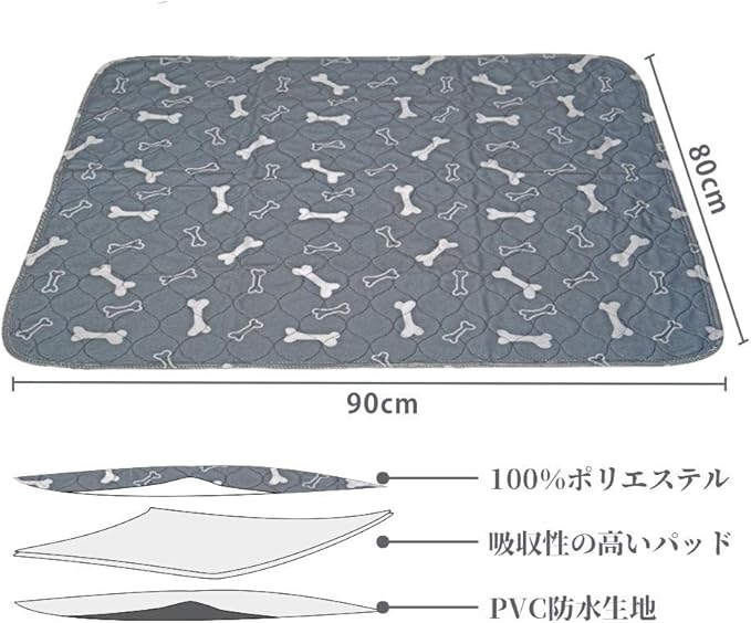 ペットマット 介護 犬用 おしっこシート 防水下敷き おねしょ対策に 速乾 滑り止め 丸ごと洗える 繰り返し利用可能 80*90cm犬 猫 ペットシーツ (犬骨柄グレー(1枚セット))