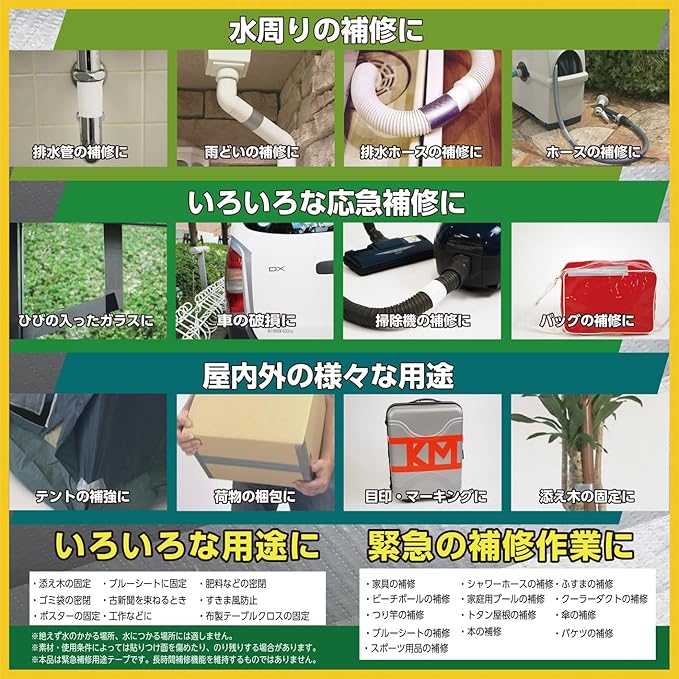 ●本品は緊急補修用途のテープです。長時間補修機能を維持するものではありません。
