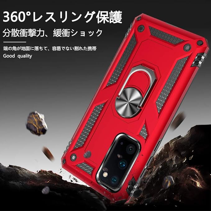 【WYEPXOL】Samsung Galaxy S20 ケース リング付き 対応 落下衝撃吸収 TPU PC 米軍MIL規格 二重構造 スマホケース サムスン ギャラクシー S20 カバー 耐衝撃 6.2インチ対応 車載ホルダー対応 軽量 擦り傷防止 取り出し易い 携帯カバー スタンド機能 落下防止 赤 ZW47-02