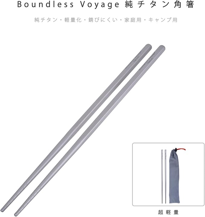 Boundless Voyage キャンピングチタン箸 角箸 丸箸 アウトドア箸 収納袋付き