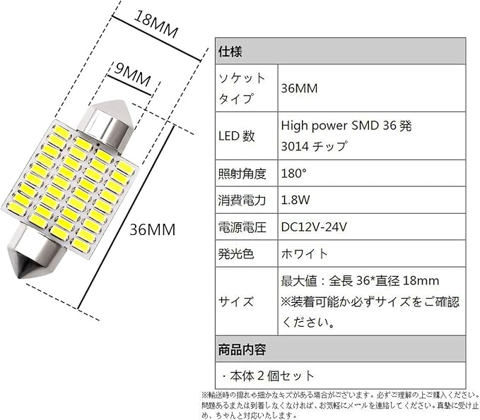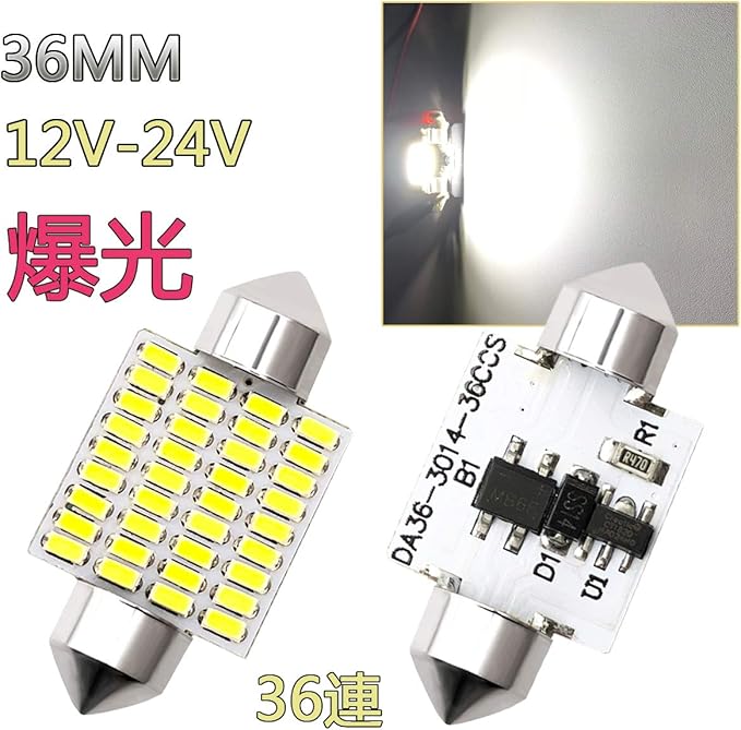 TORIBIO T10 LED ルームランプ 無極性 車内ランプ 両口金 18ヶ月保証 ルーム 室内灯 車内灯 ラゲッジランプ ナンバー灯 汎用 (T10-36mm-2個 12V 24V兼用)