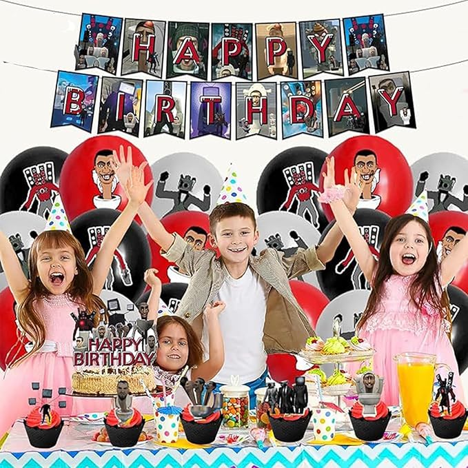 スキビティトイレ 誕生日 飾り 誕生日 飾り付け スキビディトイレ 風船 パーティー 飾り HAPPY BIRTHDAY バナー ガーランド ハッピーバースデー ケーキトッパー バルーン 装飾 かわいい バースデー デコレーション