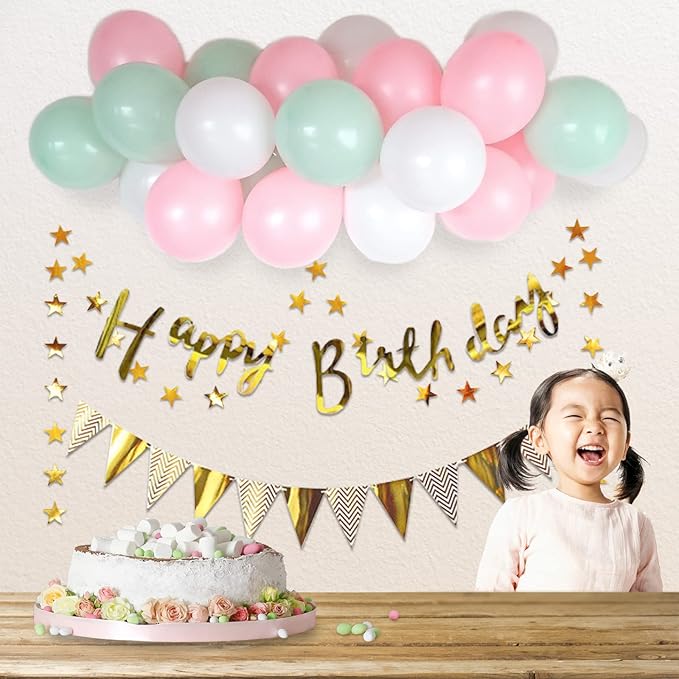 誕生日 バルーン ハッピーバースデー 風船 ガーランド 飾り付け (星が可愛いバースデーデコキット, I 桜ピンクミントグリーン)
