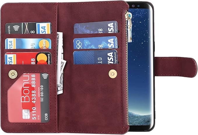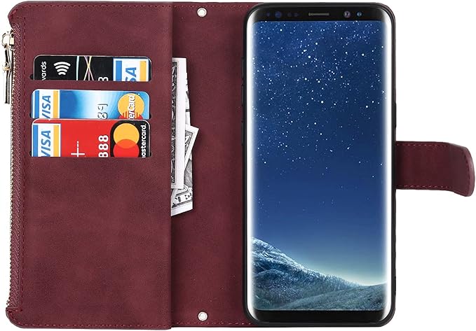 Eastwave サムスン ギャラクシー S9 ケース for Samsung Galaxy S9 縄掛けケース 手帳型 財布型 ICカード コインポケット ストラップ付き カード 収納 小銭入れ ファスナーポケット付き PUレザー 6色 レッド