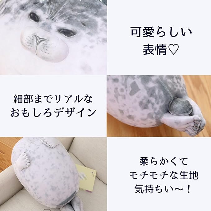 【ユニークなデザイン】リアルな見た目をしたアザラシクッションです!可愛い表情と存在感に見ているだけで癒される。お部屋のワンポイントにいかがですか?