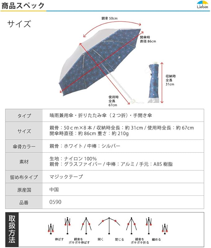 日傘 軽量 折りたたみ レディース 晴雨兼用 UVカット 遮光 遮熱 <ひんやり傘>【LIEBEN-0590(0577)】