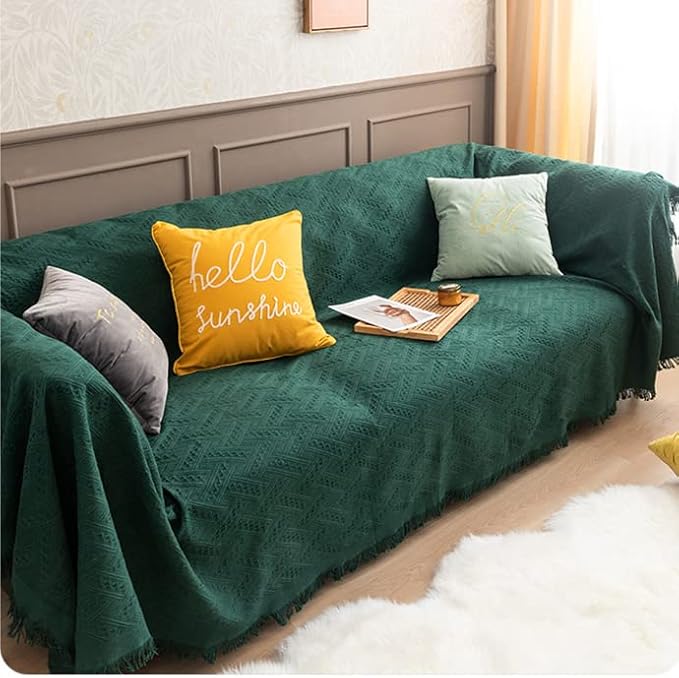 Kaoslen マルチカバー ソファカバー 北欧風 ソファーかばー 多機能 ブランケット ベッドカバー フリンジ付き ソファ、ベッドカバー、毛布、テーブルクロスなどに適しています 汚れ防止 滑り止め 傷防止 防塵 四季通用 ダークグリーン 130*180cm(1-2人掛け)