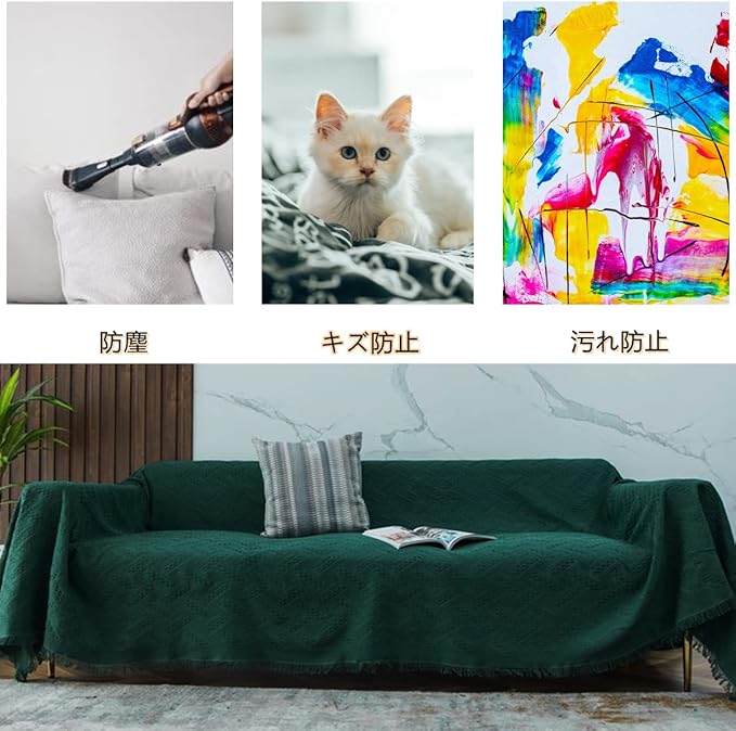 【ソファー保護】肘置きから足元まですっぽりとカバーできるカバーを掛けるだけでお使いのソファが大変身。汚れや傷から大切なソファを守ってくれます。防塵・防汚。 赤ちゃん、子供、猫、犬のいる家族に強くお勧めします。