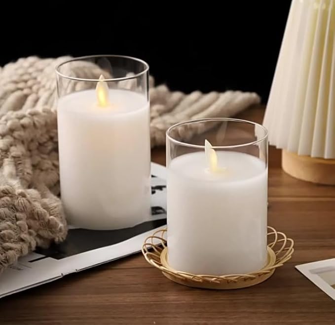 クリアガラスがオシャレな電池式ledローソク、揺らぐ炎のライト、キャンドルライト。2個セットでのお届け。