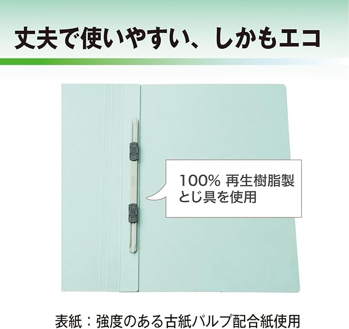 ・100%再生ポリプロピレン(PP)製薄型とじ具はクリーン焼却できる素材