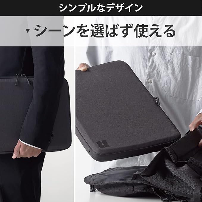 側面を360度保護するコーナーガードクッションと、天面、底面それぞれに内蔵された低反発ウレタンフォーム、機器表面を傷つけない内側の優しい起毛生地によって、収納物を徹底的に保護します。撥水加工を施した落ち着いた風合いの生地を採用したシンプルなデザイン。保護性能とスリムを両立させたインナーケースです。