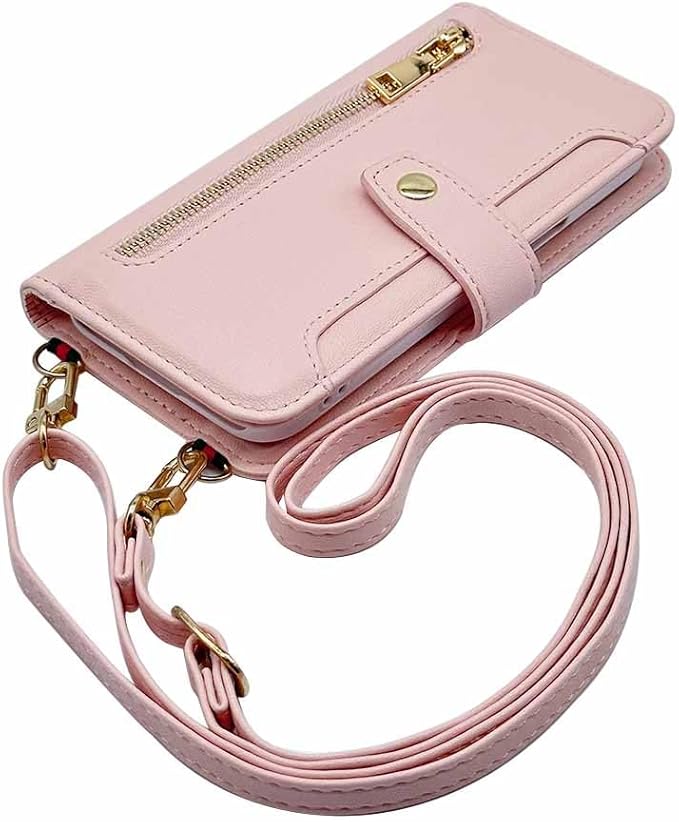 for iPhone13 アイフォン13 対応 スマホショルダー 手帳型 ケース (ピンク) 斜め掛け ストラップ 付き 落下防止 カード収納 ニュアンスカラー くすみカラー 高級PUレザー 小銭入れ 財布型 ジッパー マグネット式 肩掛け 可愛い 全面保護 軽量 大人