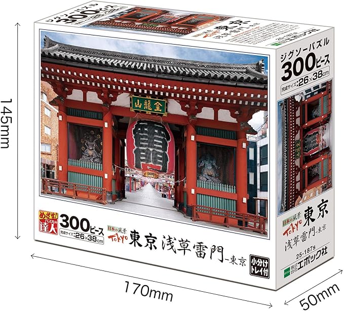 エポック社 300ピース ジグソーパズル 日本風景 浅草雷門 (26 38cm) 25-187s のり付き ヘラ付き 点数券付き EPOCH