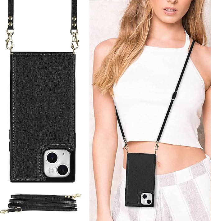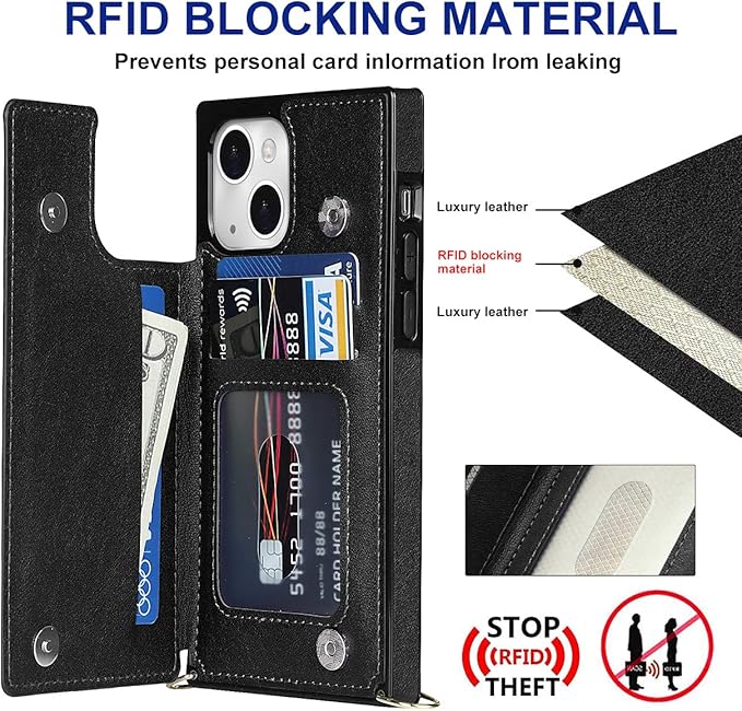 適用 iphone 13 / 14 通用 ケース ショルダー 窓口式 カード入れ スマホケース ストラップ付き アイフォン14 カバー 手帳型 斜めがけ 可愛い iphone13 ショルダーケース 首かけ 肩掛け かわいい おしゃれ RFIDスキミング防止機能 ロング クロスボディ 携帯カバー ブラック