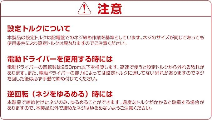 ●注意2:設定トルク値は配電盤での使用を想定しているため、他の用途でのご使用では合わない場合がございます