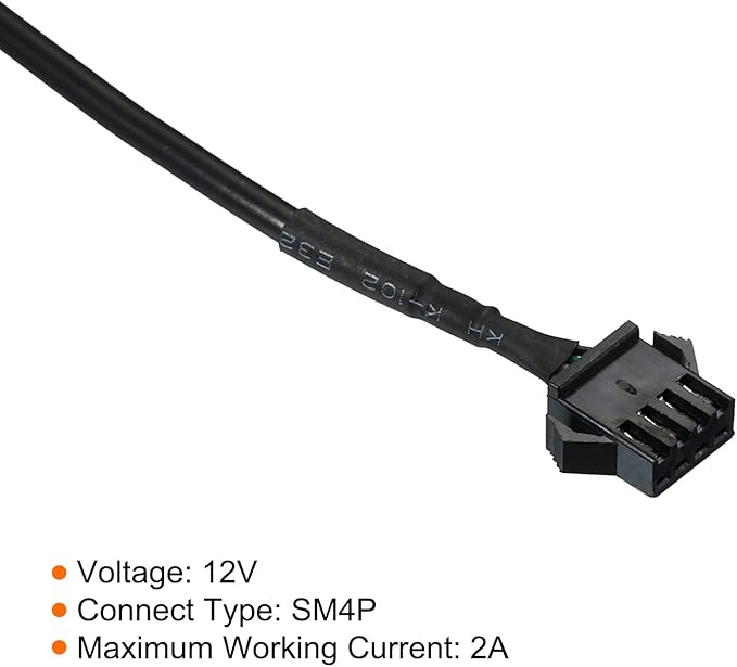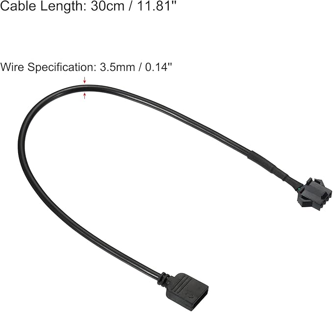 PATIKIL 4ピン 12V 30cm長さ コンピュータ マザーボード インターフェイス - SM4P メス延長ケーブル 電源アダプタ プラスチック メタル RGB ファン用 LED ストリップ ブラック