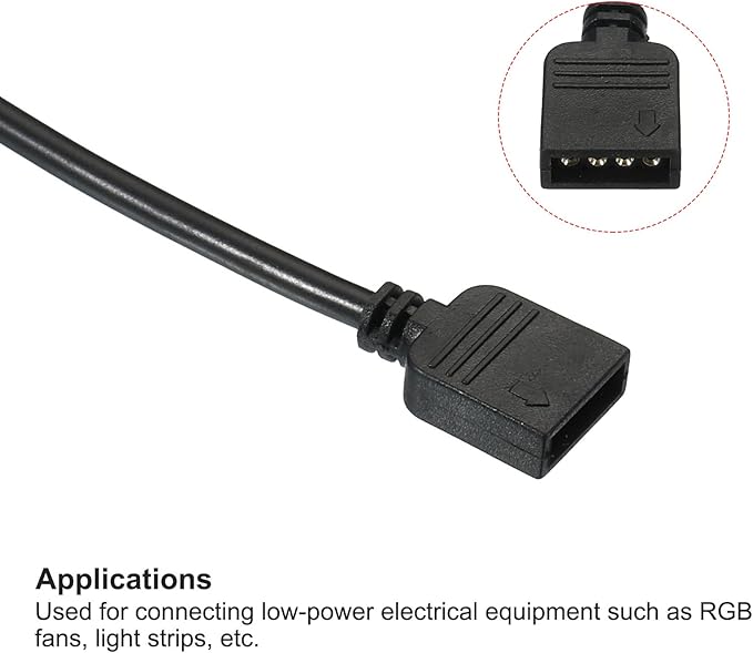応用:メス延長ケーブルは、ケーブルを延長して電源を制御するように設計されており、RGB ファン、ライト ストリップなどの低電力電気機器で一般的に使用されます。