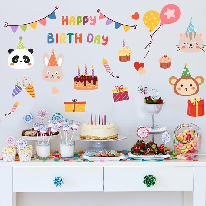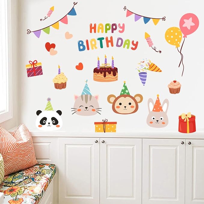 ウォールステッカー 誕生日 子供 こども 飾り 動物 風船 子供部屋 インテリア 壁紙 シール ステッカー (動物)