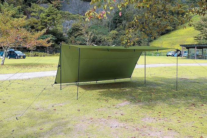 OUTDOOR MAN(アウトドアマン)QUADRADO TARP オリーブ KOTT-009K │タープ テント テントタープ レクタタープ オープンタープ UV加工 UVカット 耐水圧 収納バッグ付き BBQ