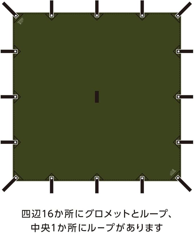 【17個のループと16個のグロメット付き】四辺にループとグロメット(金属管)で補強した穴がついています。 16本のループは全て裏布で補強されているので、破れにくくなっています。