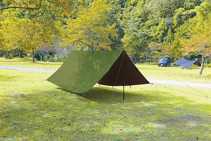 【シンプルで使いやすい正方形タープ】お手持ちのテント用ロープやポールと組み合わせれば、さまざまな張り方をすることができます。