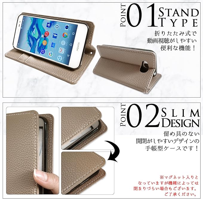 手帳部分とケース部分は接着しておりますが、強くめくると剥がれる場合がございます。