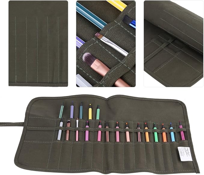 高品質のキャンバス素材で作られたこのロールアップキャンバスバッグは、埃やダメージから保護するだけでなく、ブラシを保管して整理します。
