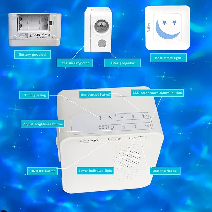 星瞬きモード:星空の夜の光は壁や天井にリアルな星空を映し出し、赤ちゃんのための良い睡眠環境を作り出し、家族や友人に忘れられない夜を見せます。 占星術ファン、ロマン派、差のある常夜灯を楽しみたい子供、または家に星の光を取り入れたい人に最適です。