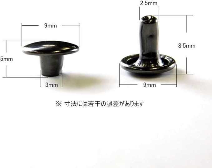 両面大カシメ 足8.5mm (黒ニッケル, 50セット)