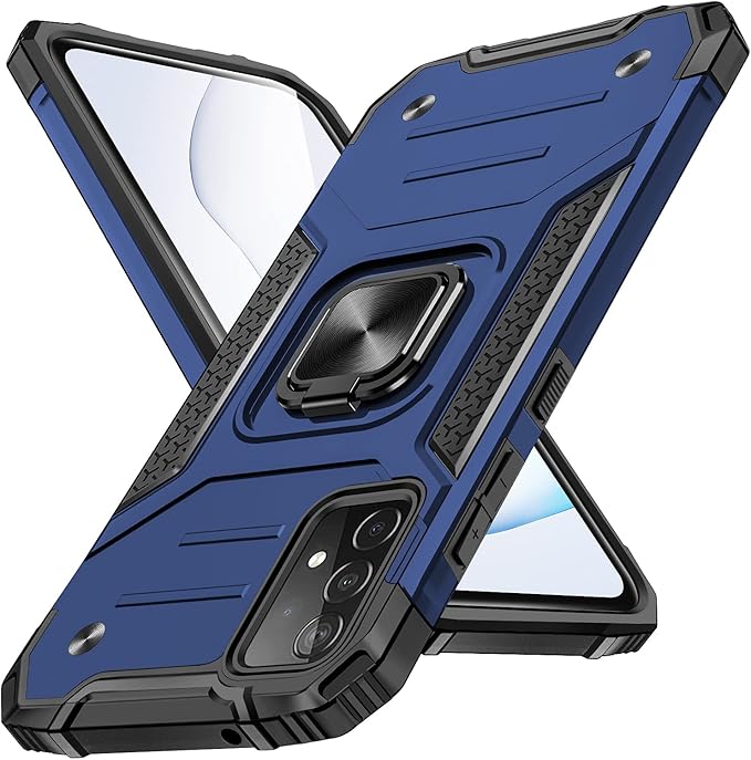 Galaxy A52 ケース リング 耐衝撃 米軍MIL規格取得 SC-53B カバー 衝撃吸収 レンズ保護 TPU+PC リングつき 指紋防止 車載ホルダー対応 スタンド機能 防塵 薄型 軽量 落下防止 擦り傷防止 携帯カバー 青C82-00236