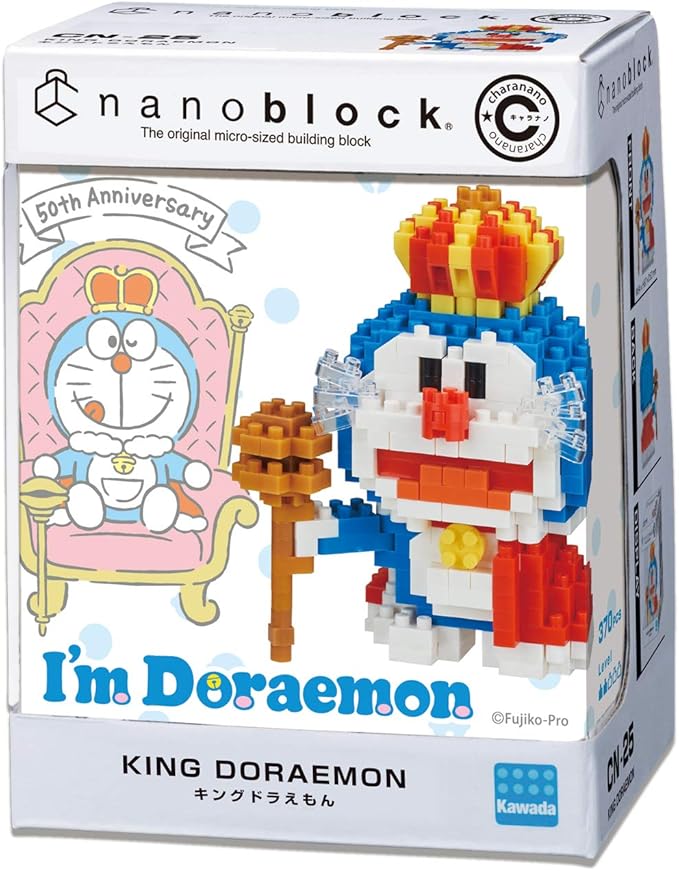 キャラナノにドラえもん50周年を記念した王様コスチュームの「キングドラえもん」が新登場!!「キャラナノ」は様々なキャラクターを同一規格の完成サイズ、パッケージで展開するナノブロックの新キャラクターコレクタブルライン。パッケージは完成品を飾るコレクションケースとしても使用できます。ドラえもんは来年50周年!王様コスチュームに身を包んだドラえもんをキャラナノサイズで再現。展示用透明プレート(10 10ポッチ)付き。難易度:2 ピース数:370