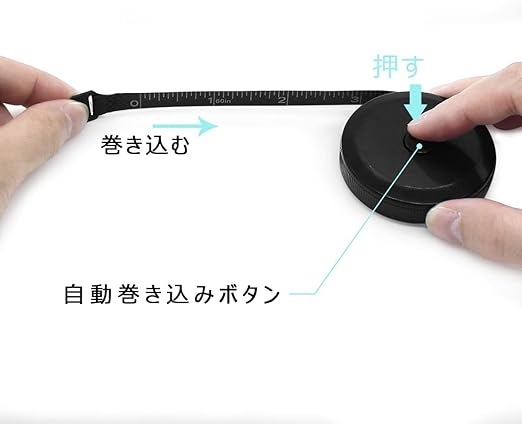 メジャー 巻き尺 巻尺 自動巻取式 巻取りボタン付き手作り 洋裁用 測定用 採寸用 裁縫用 手芸用 (ブラック, 1.5m)