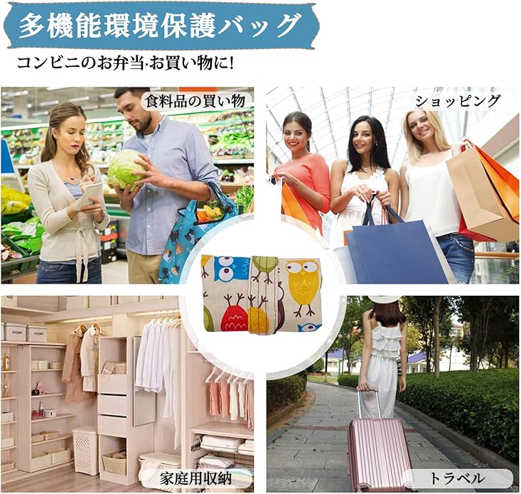 [GOKEI] エコバッグ コンビニバッグ 買い物バッグ 折りたたみ 大容量 防水素材 軽量 買い物袋 コンパクト 収納 水や汚れにも強い
