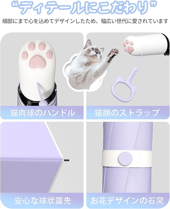 猫の肉球 日傘 UVカット 100 遮光 折り畳み傘 折りたたみ傘 ワンタッチ自動開閉 丈夫 軽量 コンパクト 紫外線遮断 耐風撥水 晴雨兼用 携帯便利 レディース メンズ 子供 母の日 父の日 誕生日 プレゼント 収納ポーチ付き | ryouhinshop