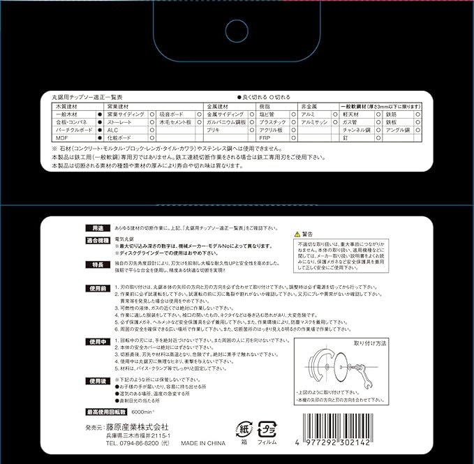 適合機種:電気丸鋸※最大切り込み深さの数字は機械メーカー・モデルNoによって異なります※ディスクグラインダーでの使用はおやめ下さい。