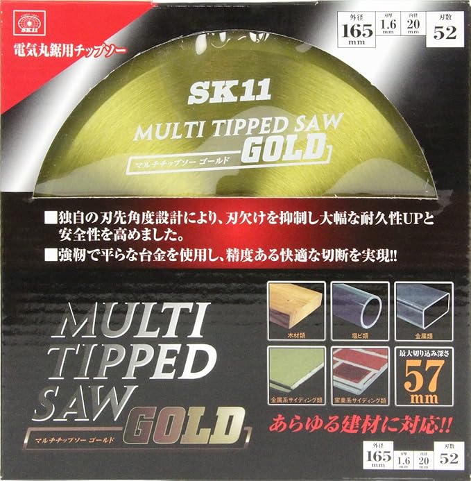 SK11(エスケー11) MULTIチップソーGOLD 電気丸鋸用 165mm 165 52P
