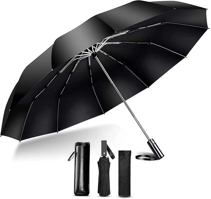 折りたたみ傘 Dmyvtel【2022強化版 腐食コーデイング済み 超大12本骨】折り畳み傘 メンズ 超大面積108cm直径 おりたたみ傘 自動開閉 紫外線遮蔽 UVカッ 台風対応 梅雨対策 耐強風 Teflon超撥水 晴雨兼用 男子日傘 ビッグサイズ 男女兼用 革の収納ポーチ付き (ブラック) | ryouhinshop