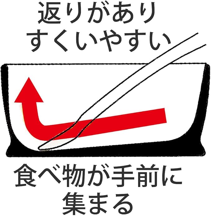 底がナナメなので食べ物が手前に集まりスプーンですくいやすい