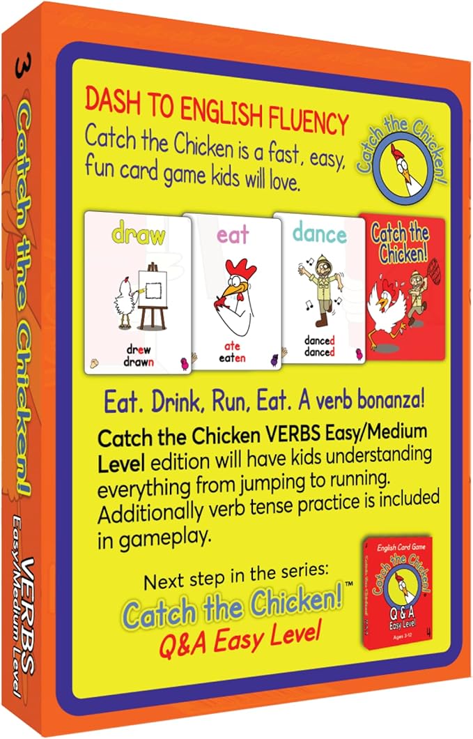 VERBS Easy/Medium Level Catch The Chicken 英語カードゲーム English Card Game 英語動詞フラッシュカードゲームアクション