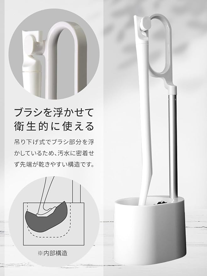 【衛生的な設計】吊り下げ式だから乾きやすく汚い水にブラシが密着することがないので、衛生的にご使用いただけます。 また軽量でケースは持ち手付きだから軽々と持ち上げられるので床に滴り落ちる心配がありません。