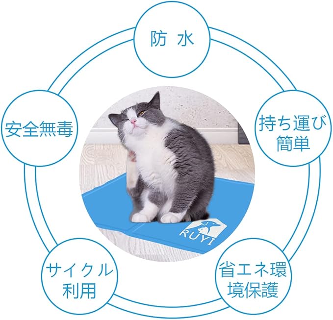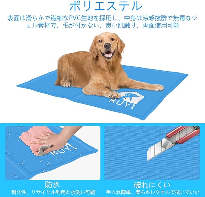 RUYI ペット ひんやりマット ペットマット ペットの体温を低下される 冷却マット 暑さ対策 夏用 冷感ジェルマット 防水 速乾 丸ごと洗える エコ 繰り返し利用可能マット S、M、L、XLサイズ選べる 小型犬や猫から大型犬まで対応可能 クールマット (L,50cm 65cm)