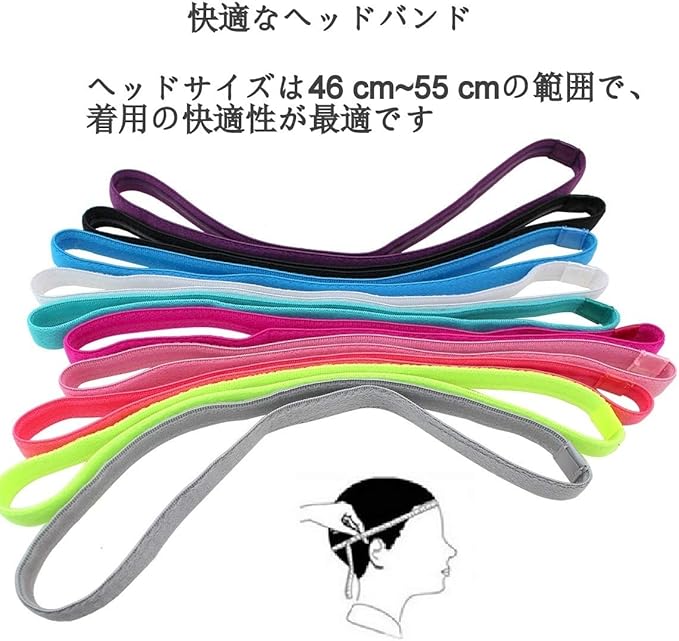 【滑り止め】:裏面にいい肌触りのシリコンゴムが施されていています、ご使用中にヘアバンドがずり落ちるのを防ぐことができます。