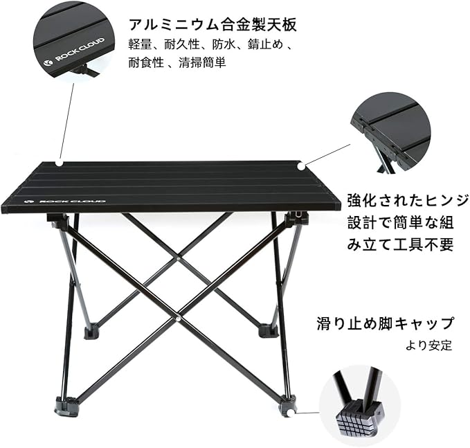 Rock Cloud キャンプテーブル 折りたたみ アルミ ロールテーブル コンパクト 超軽量 アウトドア 運動会 BBQ ハイキング ビーチ 収納袋付き