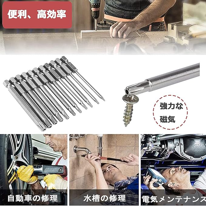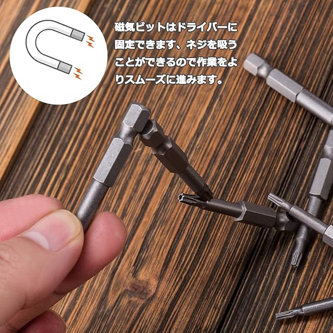 【磁気】磁気ビットはドライバーに固定できます、ネジを吸うことができるので作業をよりスムーズに進みます。
